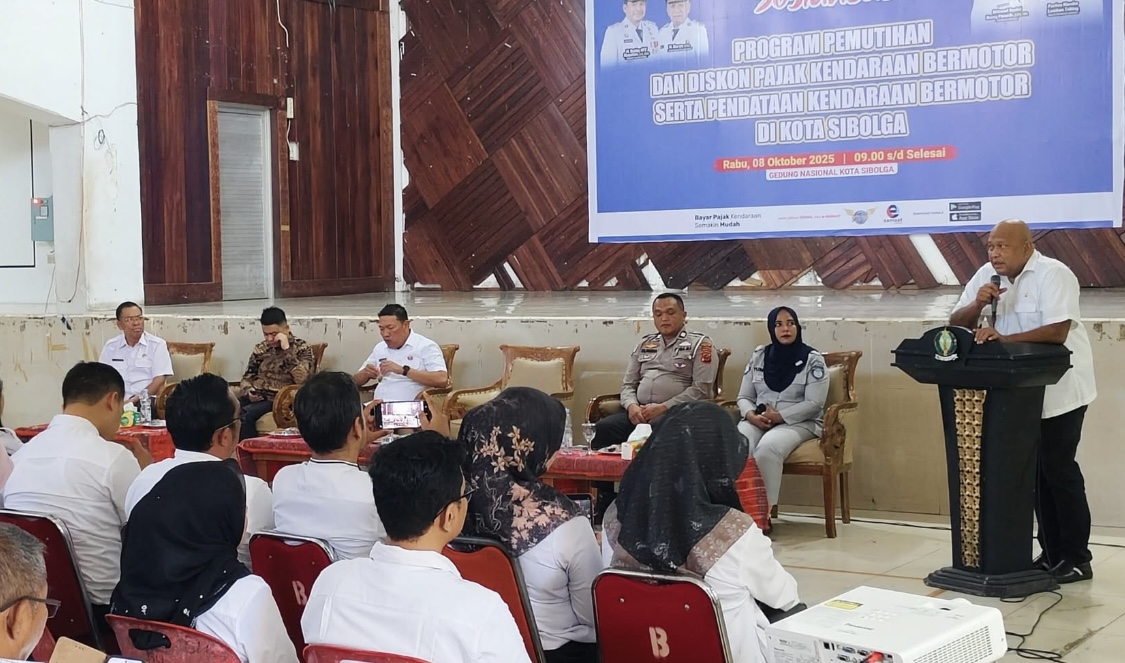 Dalam upaya meningkatkan pendapatan asli daerah (PAD) dari sektor pajak kendaraan bermotor, Pemerintah Kota (Pemko) Sibolga melalui Badan Pengelolaan Keuangan, Pendapatan dan Aset Daerah (BPKPAD) Kota Sibolga melaksanakan Sosialisasi Program Pemutihan dan Diskon Pajak Kendaraan Bermotor serta Pendataan Kendaraan Bermotor, bertempat di Gedung Nasional Sibolga, Jalan Ferdinan Lumban Tobing, pada Rabu (08/10/2025).
