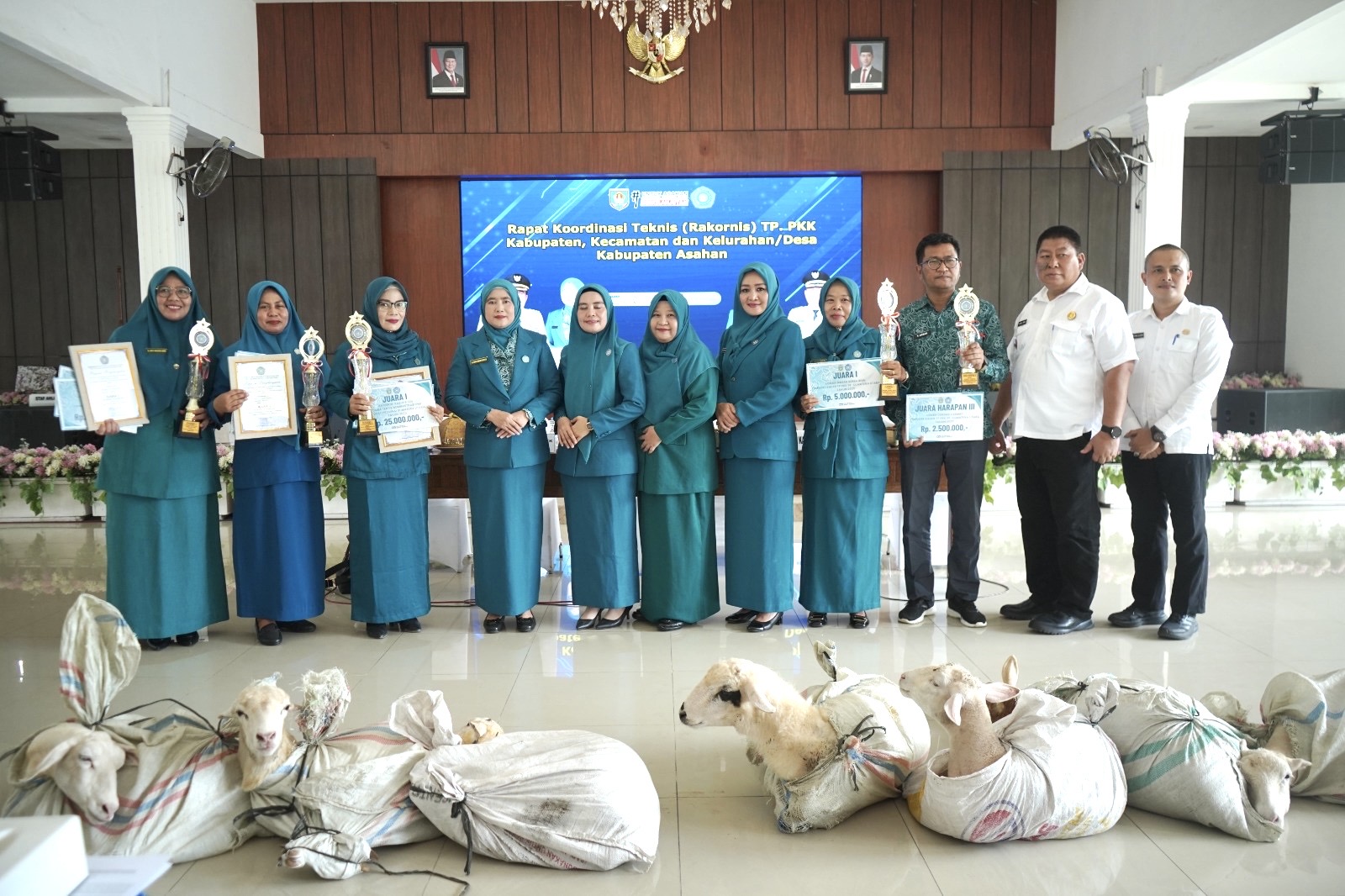 Sementara itu, Ketua TP PKK Kabupaten Asahan, Ny. Yusnila Indriati Taufik, menyampaikan refleksi atas partisipasi TP PKK Asahan pada Jambore HKG PKK Sumut 2025 yang dinilai meningkatkan motivasi dan kompetensi kader. Pada kesempatan tersebut, Ketua TP PKK bersama Ny. Juni Rianto juga menyerahkan hadiah berupa uang tunai, piagam, piala, dan dua ekor kambing kepada para juara lomba sebagai bentuk apresiasi.