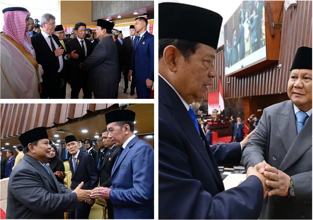 Tampak diantaranya Presiden Prabowo menyalami Ketua MPR RI Ahmad Muzani, Ketua DPR RI Puan Maharani, Ketua DPD RI Sultan Bachtiar Najamudin, serta para anggota dewan yang hadir. Namun, momen yang paling mencuri perhatian terjadi ketika Presiden Prabowo menghampiri barisan para Presiden dan Wakil Presiden RI terdahulu.