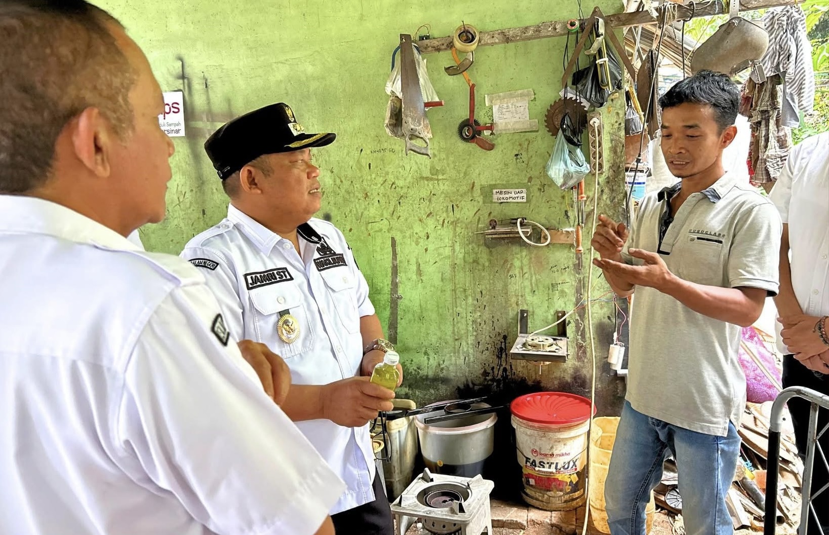 Wakil Bupati Labuhanbatu H. Jamri ST, bersama Ketua KPS Kemri Sipahutar didampingi Sekretaris KPS Veri Madewa terjun langsung mengunjungi tempat pengolahan limbah sampah plastik menjadi bahan bakar alternatif, di Jalan Aek Paing Bawah 1, Kelurahan Aek Paing, Kecamatan Rantau Utara. Rabu (20/8/2025).