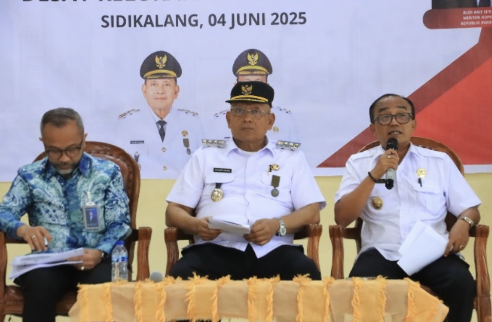 Wakil Bupati Samosir Ariston Tua Sidauruk didampingi Kadis Kopnakerindag Rista Sitanggang, Kadis Kominfo Immanuel Sitanggang mengikuti Rapat Koordinasi (Rakor) Daerah Percepatan Pembentukan Koperasi Merah Putih yang digelar Kementerian Koordinator Bidang Pangan RI di Kantor Bupati Dairi-Sidikalang, Rabu (04/06/2025).