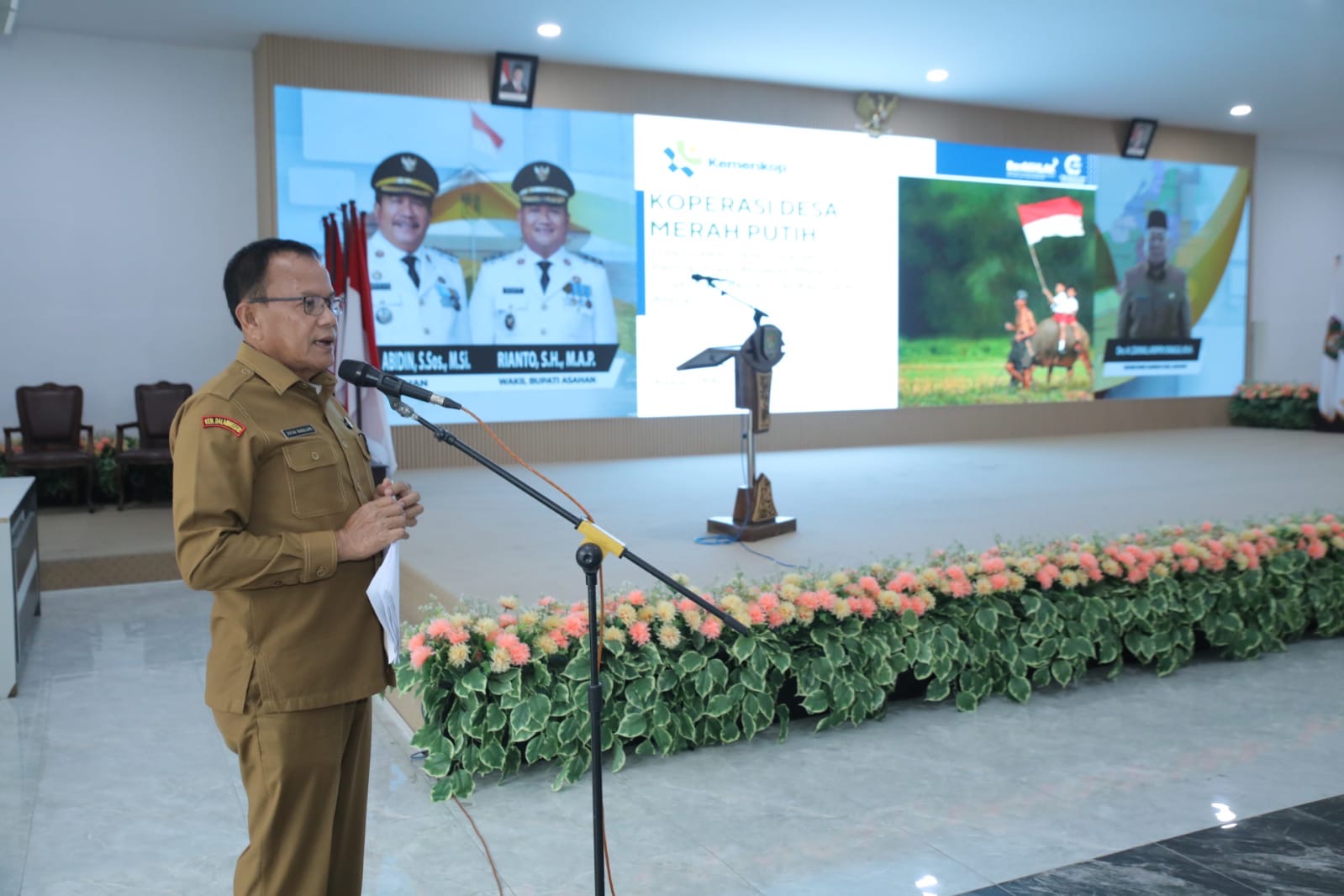 Wakil Bupati Asahan, Rianto, SH., MAP, membuka sosialisasi pembentukan Koperasi Desa dan Kelurahan Merah Putih di Kabupaten Asahan berlangsung di Aula Melati kantor Bupati Asahan, Senin (28/04/2025)
