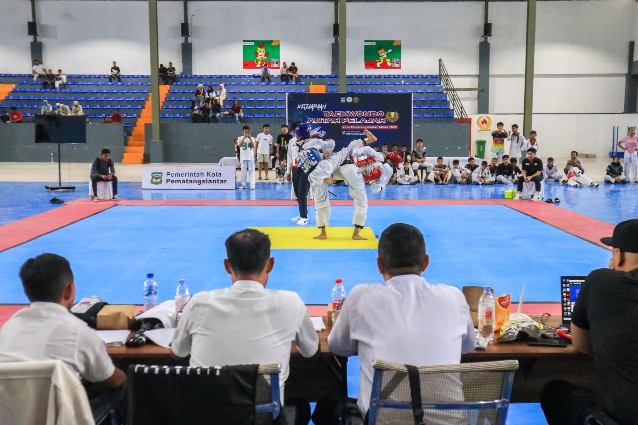 Wali Kota Pematangsiantar Wesly Silalahi SH MKn bangga dengan antusiasnya peserta mengikuti Kejuaraan Taekwondo Antar Pelajar Kota Pematangsiantar Tahun 2025. Rasa bangga tersebut disampaikan Wesly yang diwakili Kepala Dinas Pariwisata Hamzah Fanshuri Damanik SSTP MSi, di acara Pembukaan Kejuaraan Taekwondo Antar Pelajar Kota Pematangsiantar Tahun 2025 di Gedung Olahraga (GOR) Lantai 4 Suzuya Merdeka Mall, Jalan Merdeka Kelurahan Pardomuan Kecamatan Siantar Timur, Sabtu (06/12/2025).