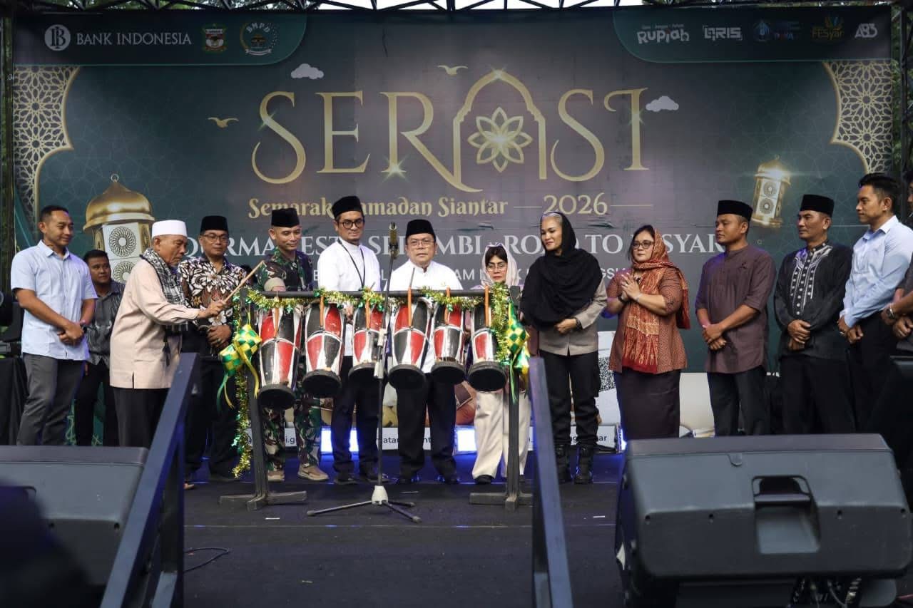 Wali Kota Pematangsiantar Wesly Silalahi SH MKn bersama Kepala Perwakilan Bank Indonesia (KPw BI) Pematangsiantar Ahmadi Rahman, Ketua TP PKK Ny Liswati Wesly Silalahi, dan Unsur Forkopimda memukul Gondrang Simalungun, sebagai tanda kick off (pembukaan) Semarak Ramadhan Siantar (SERASI) 2026. SERASI 2026 yang merupakan kolaborasi Bank Indonesia (BI), Pemerintah Kota (Pemko) Pematangsiantar, dan stakeholder terkait berlangsung di Lapangan Adam Malik, 5-11 Maret 2026.