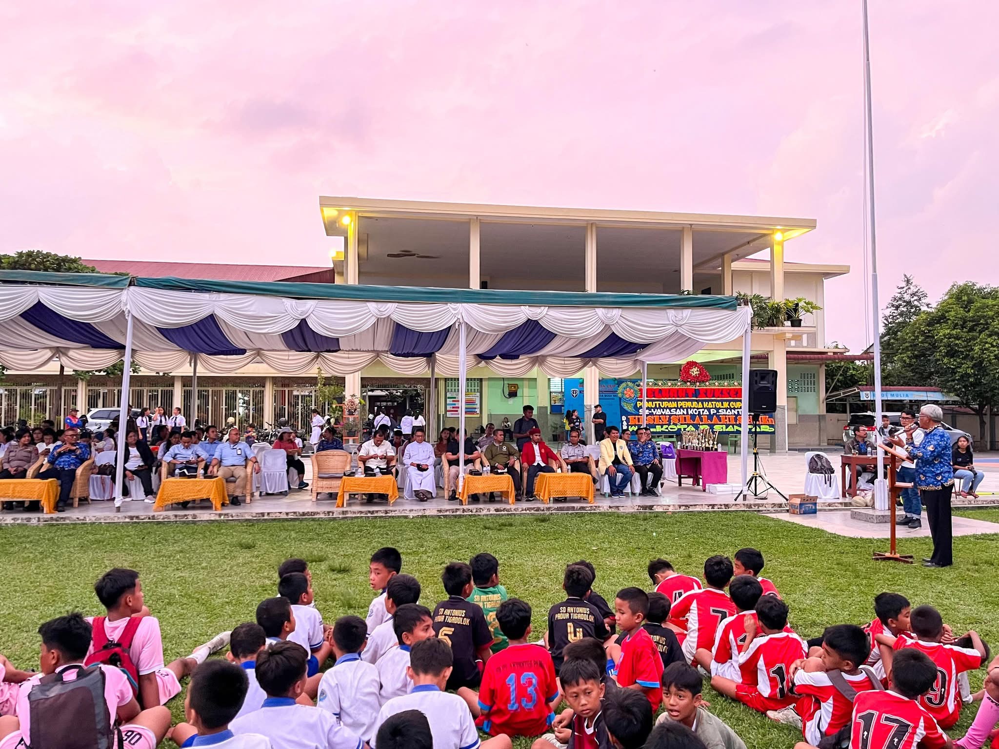 Wali Kota Pematangsiantar Wesly Silalahi SH MKn diwakili Staf Ahli Bidang Pembangunan Drs Daniel Siregar menutup secara resmi Piala Wali Kota Pemuda Katolik Cup Tahun 2025, di Lapangan Budi Mulia Kecamatan Siantar Marihat, Selasa (28/10/2025). Tampil sebagai juara 1 SMP Cinta Rakyat 1, juara 2 SMP Budi Mulia, dan juara 3 SMP Bintang Timur.