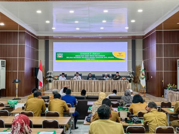 Wali Kota Pematangsiantar Wesly Silalahi SH MKn diwakili Asisten Perekonomian dan Pembangunan Zainal Siahaan SE MM membuka kegiatan Sosialisasi Instruksi Wali Kota tentang Zakat, Infaq, dan Sedekah oleh Badan Amil Zakat Nasional (Baznas) Kota Pematangsiantar di Ruang Serbaguna Pemerintah Kota (Pemko) Pematangsiantar, Selasa (15/07/2025).