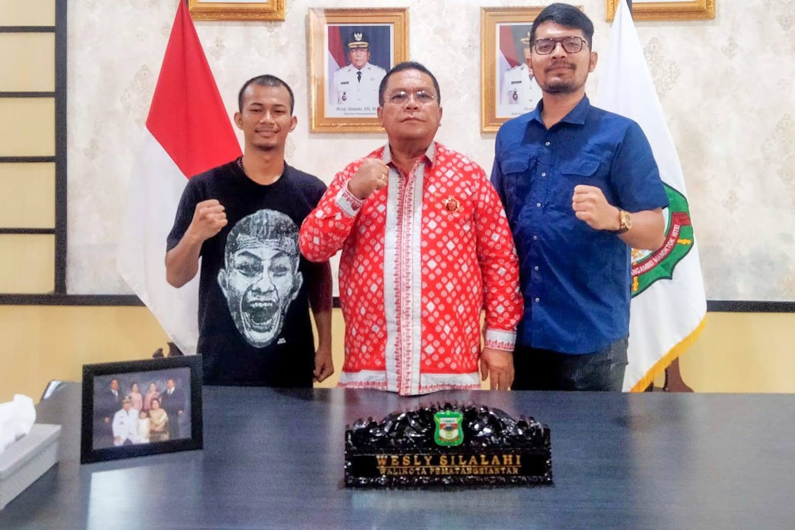 Wali Kota Pematangsiantar Wesly Silalahi SH MKn memberikan motivasi dan dukungan kepada Ajai Pasaribu yang akan bertanding di ajang One Pride MMA 87 Bandung. Ajai dijadwalkan berhadapan dengan Antoni Tambunan yang berasal dari Porsea Kabupaten Toba, Sabtu (14/06/2025).