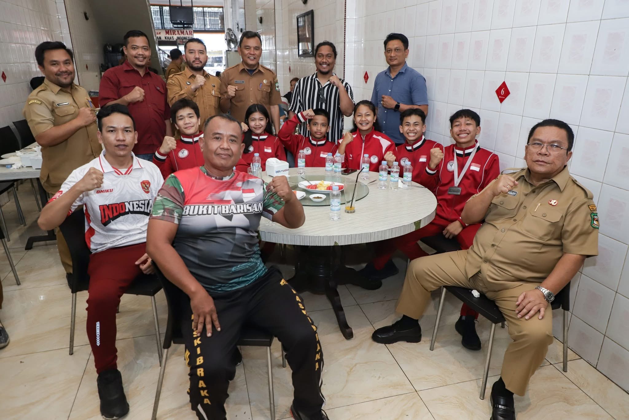 Wali Kota Pematangsiantar Wesly Silalahi SH MKn ramah tamah dan menikmati makan siang bersama para atlet yang baru bertanding di event World MMA Championship 2025, di Sao Paulo, Brazil. Ramah tamah dan makan siang bersama ini digelar di Rumah Makan (RM) Miramar, Jalan Sutomo Kelurahan Proklamasi Kecamatan Siantar Barat, Sabtu (07/01/2025).