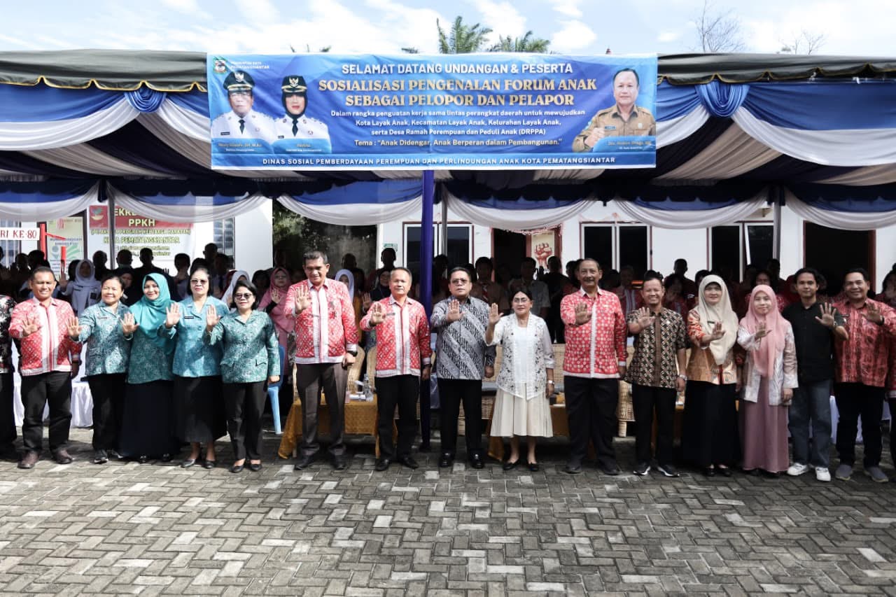 Demikian ditegaskan Wali Kota Pematangsiantar Wesly Silalahi SH MKn dalam arahan dan bimbingannya sebelum membuka Sosialisasi Pengenalan Forum Anak sebagai Pelopor dan Pelapor dalam Rangka Kerjasama Lintas Perangkat Daerah untuk Mewujudkan Kota Layak Anak, Kecamatan Layak Anak, Kelurahan Kayak Anak, serta Desa Ramah Perempuan dan Peduli Anak (DRPPA). Sosialisasi dengan tema “Anak Didengar, Anak Berperan dalam Pembangunan” tersebut berlangsung di Kantor Dinas Sosial Pemberdayaan Perempuan dan Perlindungan Anak (Dinsos P3A) Pematangsiantar, Jalan Dahlia Kelurahan Bukit Sofa Kecamatan Siantar Sitalasari, Kamis (18/09/2025).