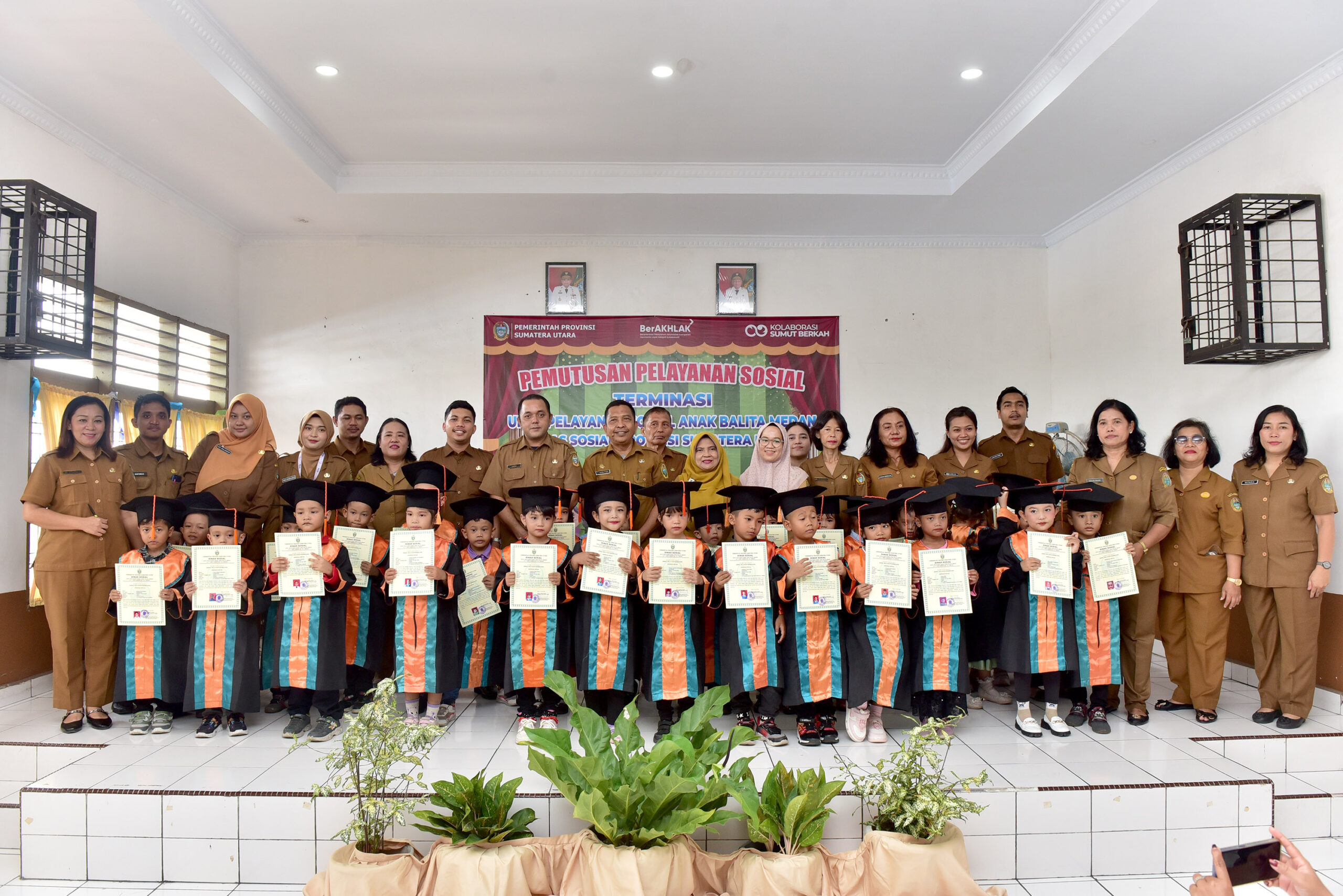 Dinas Sosial Sumatera Utara (Sumut) melepas 31 anak Pemerlu Pelayanan Kesejahteraan Sosial (PPKS) yang selama ini mendapat pengasuhan di Unit Pelayanan Teknis Daerah (UPTD) Pelayanan Sosial Anak Balita Medan, Selasa (24/6/2025). Dinas Sosial Sumut pun berharap pengasuhan berupa Pendidikan Anak Usia Dini (PAUD) yang diberikan pada anak-anak asuh tersebut bermanfaat besar.