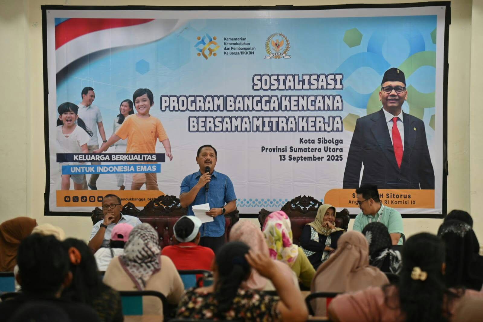 Pemerintah Kota (Pemko) Sibolga mendukung penuh pelaksanaan sosialisasi Program Pembangunan Keluarga, Kependudukan, dan Keluarga Berencana (Bangga Kencana) bersama mitra kerja. Dukungan ini disampaikan oleh Pelaksana Tugas (Plt) Asisten Administrasi Pembangunan dan Umum, Haslan Efendi, S.Sos., M.M., saat membacakan sambutan Wali Kota Sibolga, Akhmad Syukri Nazry Penarik, di Aula Cafe 88, Jalan Diponegoro, Kota Sibolga, pada Sabtu (13/09/2025) siang.